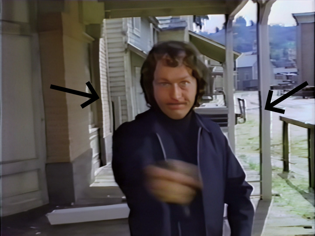 The fill-in capture was then put through an initial cleanup AVISynth script. The script performed an inverse telecine to restore it to its original 23.976 fps, and then we hit it with some modest noise reduction to remove the most obvious dirt and grain without destroying any visible detail. Once that was done, it was put through the Topaz AI for enhancement and upscaling to 1080p. Finally, it was color matched to our primary source as closely as possible in Premiere Pro and dropped in place. The results were respectable, but not what we were hoping for. The vertical distortion that’s common in old videotape is quite noticeable here and accentuates the minor color differences to prevent the transition from being seamless.