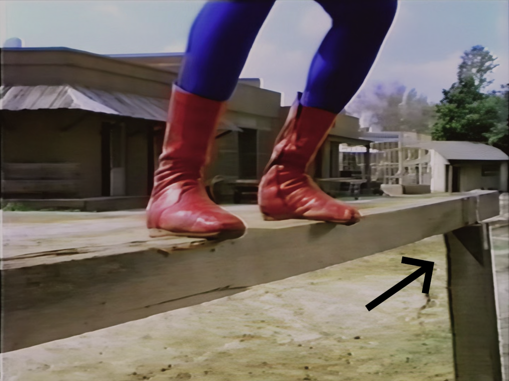 We chose the scene in “Deadly Dust” Part 2 of Emil Farkas using a nunchaku to find out. This scene was removed from all international versions of the film due to the wide variety of regulations surrounding the nunchaku in different countries. Teenage Mutant Ninja Turtles got the same treatment for broadcast in the UK due to restrictions in place there. The scene only exists in domestic VHS releases of the “Deadly Dust” version, which are all made from lower quality prints than the Spider-Man Strikes Back version that was released internationally. It make sense because it’s not unreasonable to speculate that a film print intended to be projected on an 80-foot screen might get a little more care than a VHS release intended to be viewed on a 27″ or so television screen. Interestingly, the cinematic version is zoomed in quite a bit compared to the TV version.
